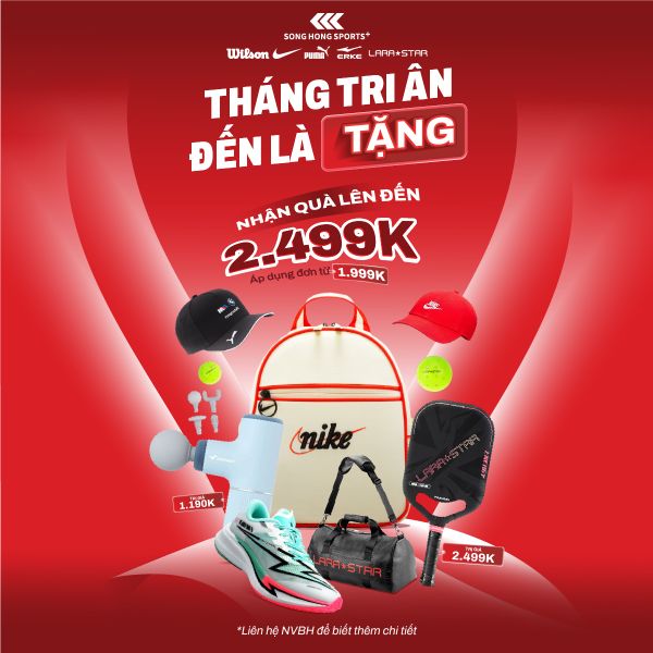 Tháng Tri Ân là cơ hội để bạn sở hữu các sản phẩm thể thao chất lượng cao kèm quà tặng giá trị. Từ vợt Pickleball, túi thể thao, nón thời trang đến máy massage cao cấp, mọi món quà đều được chọn lọc để nâng tầm trải nghiệm tập luyện và phong cách sống năng động.